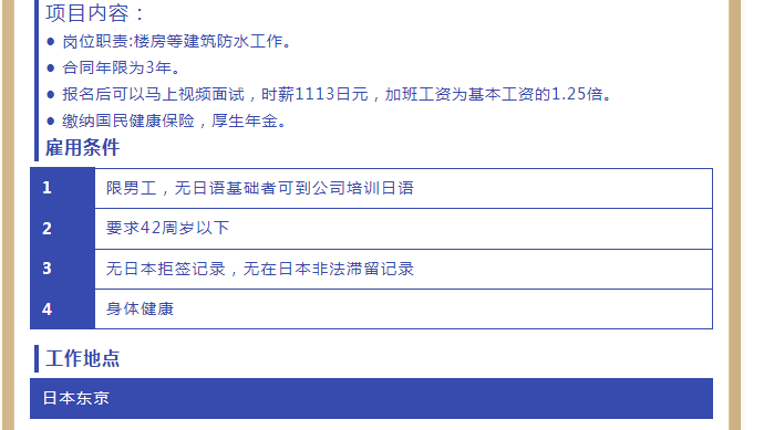 【恒德國際】日本近期招聘項目